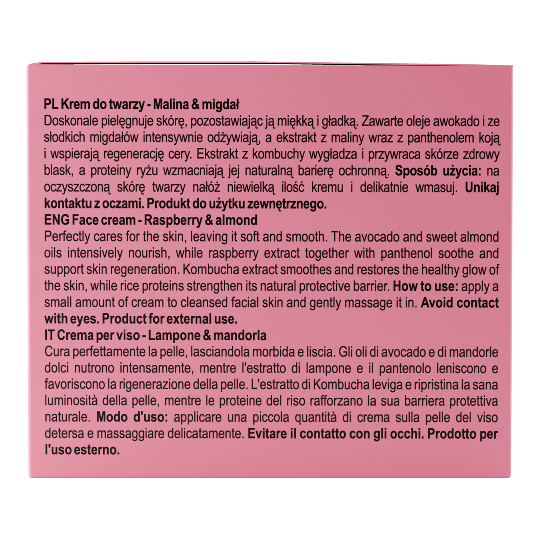 Krem Malina & migdał jest jak deser dla Twojej skóry – aksamitny, odżywczy i pełen dobroci. Nawilża, wygładza i otula subtelnym, owocowym zapachem. Idealny sposób, by dodać swojej pielęgnacji odrobinę przyjemności!