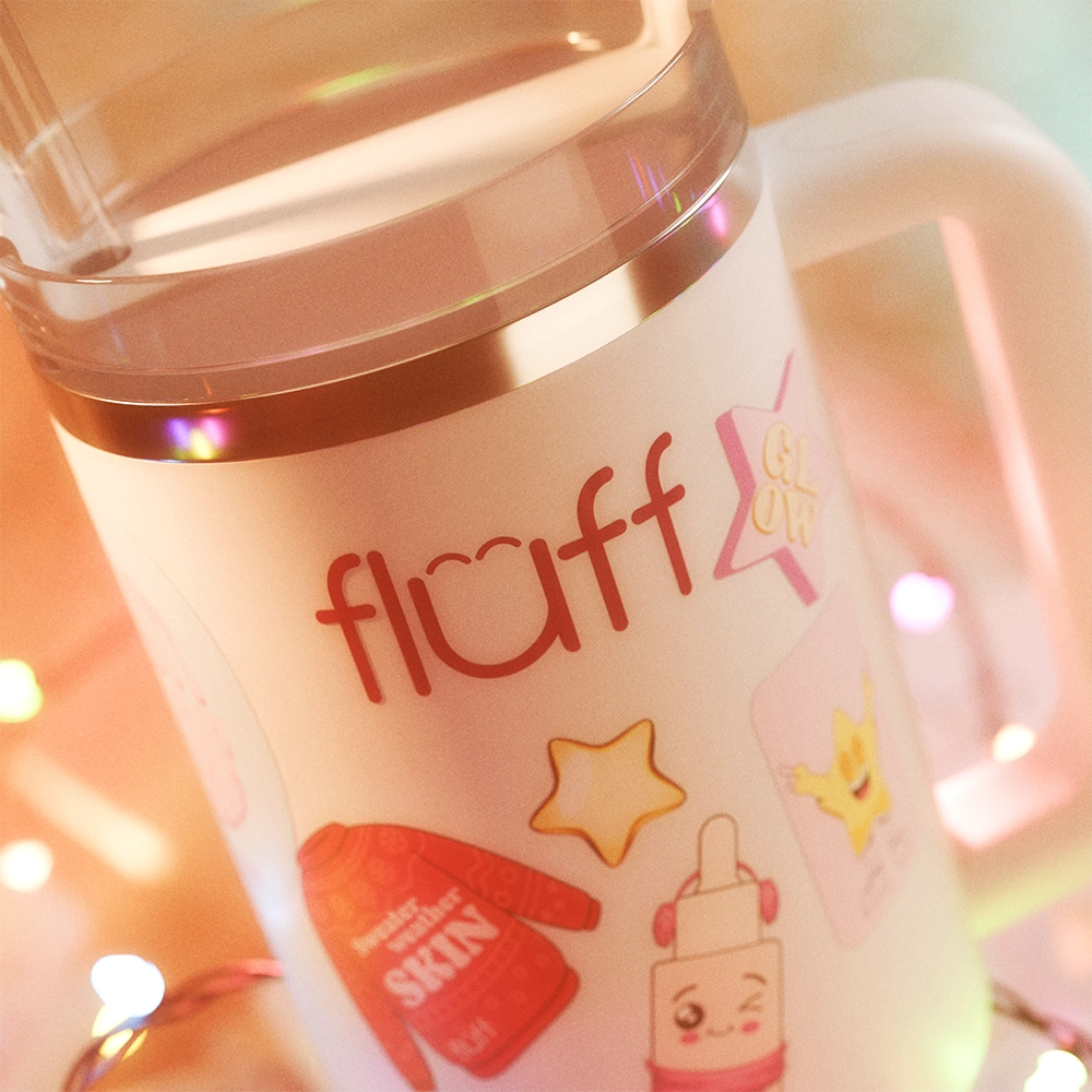 Naklej na ulubione kosmetyki (czyli Fluff), etui, lusterko czy butelkę z wodą – i gotowe, fluffowy vibe zrobiony